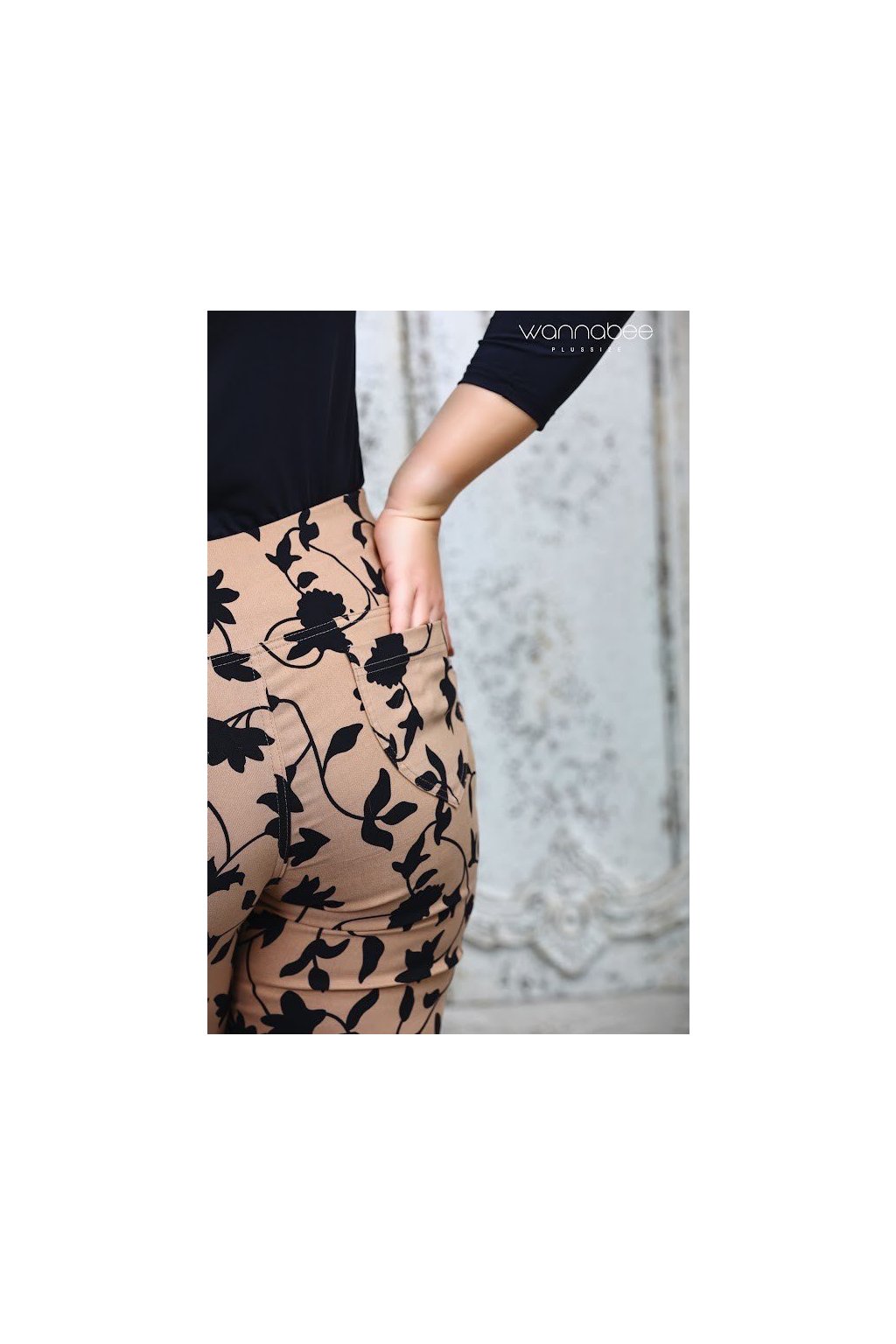 Pohodlné elastické nohavice so širokým elastickým pásom a zadnými vreckami. Pravidelný pás s módnym jesenným vzorom. Odporúčame na bežné a každodenné nosenie.
